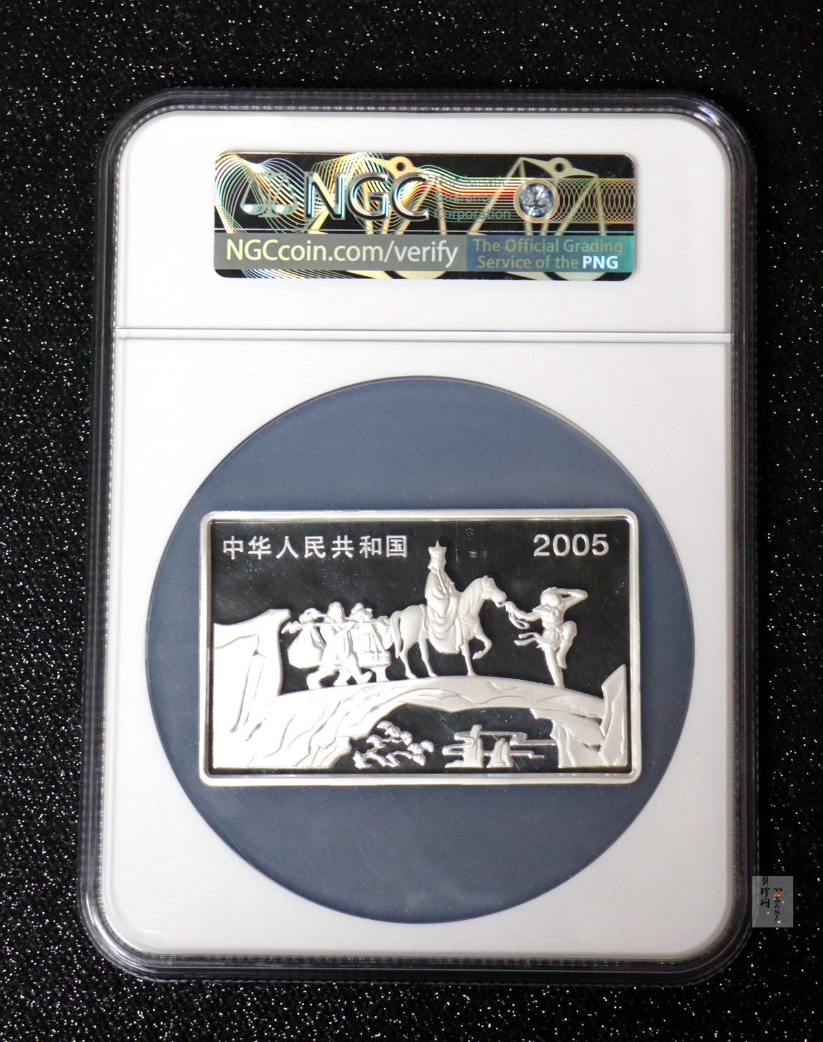 • 【050704】2005年中国古典文学名著《西游记》第(3)组-文殊收狮图5盎司长方形精制彩银币