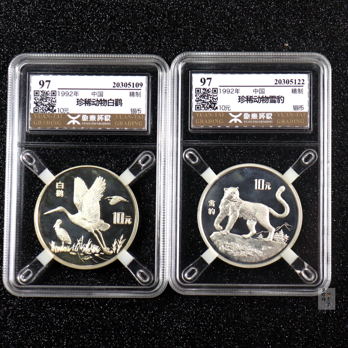 • 【929200】1992年珍稀动物金银纪念币(第3组)精制银币两枚一套