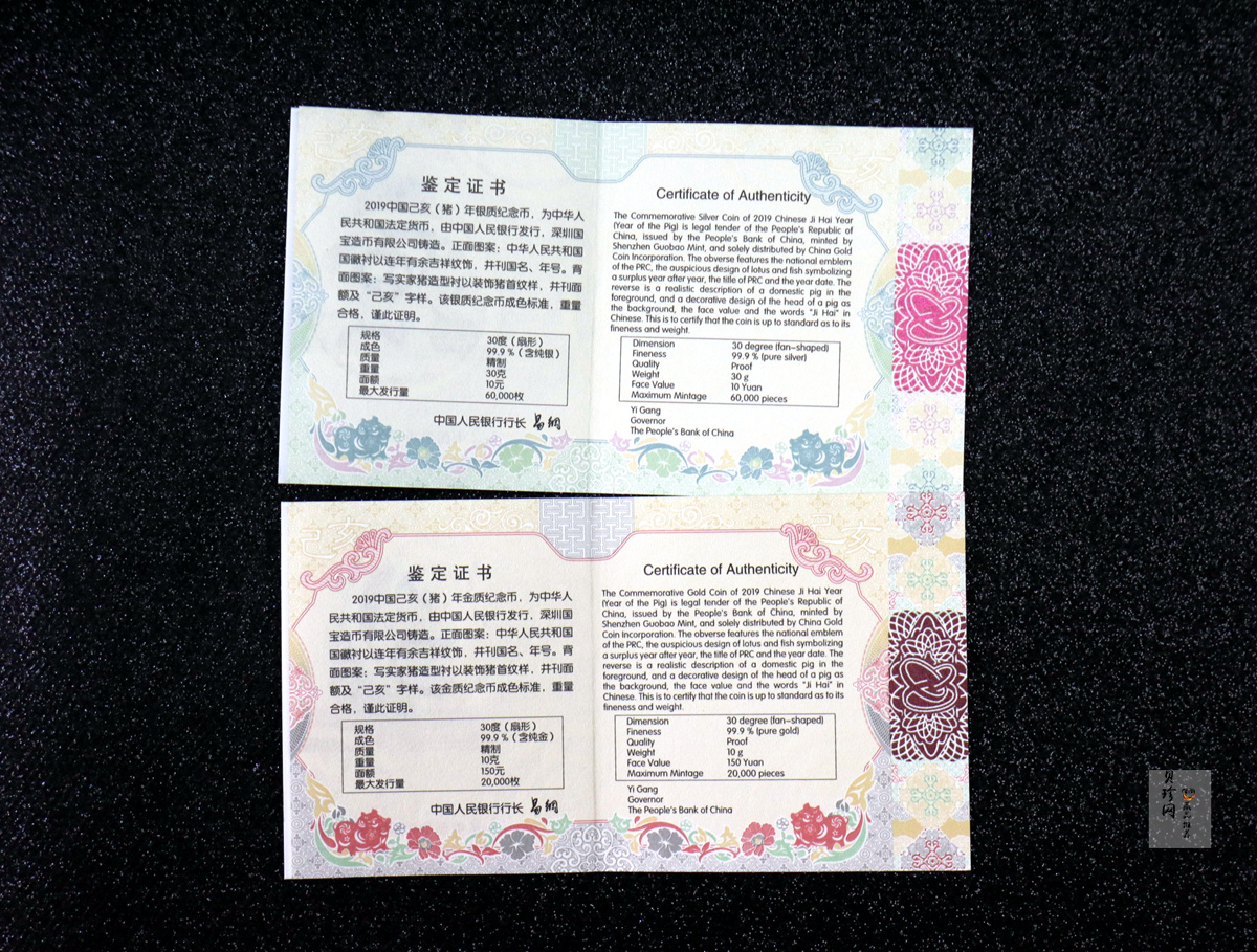 套币:2019中国己亥(猪)年生肖精制扇形金银币2枚一套
