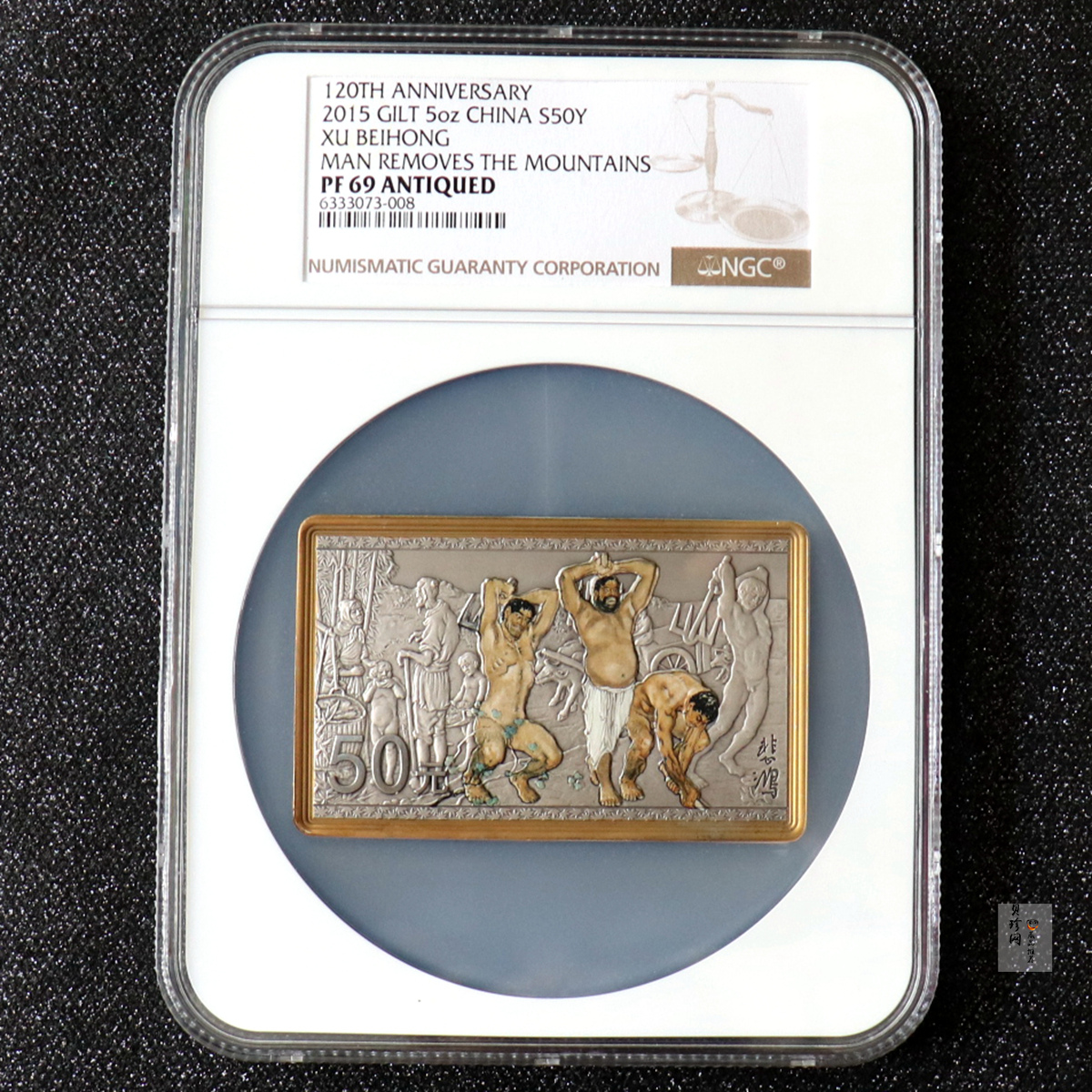 • 【150403】2015年近代国画大师徐悲鸿-愚公移山图5盎司长方形精制银币
