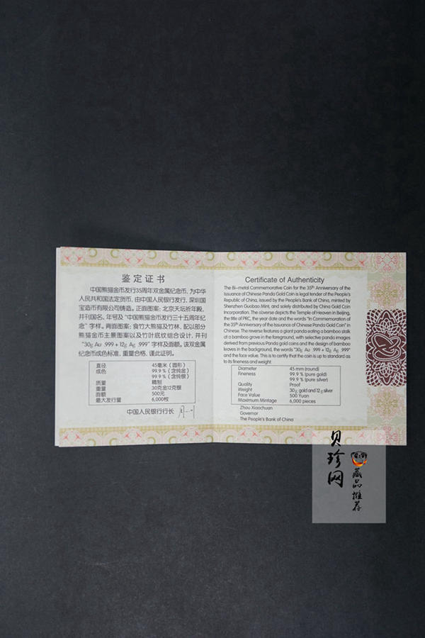 • 【170601】2017年中国熊猫金币发行35周年30克金+12克银精制双金属币