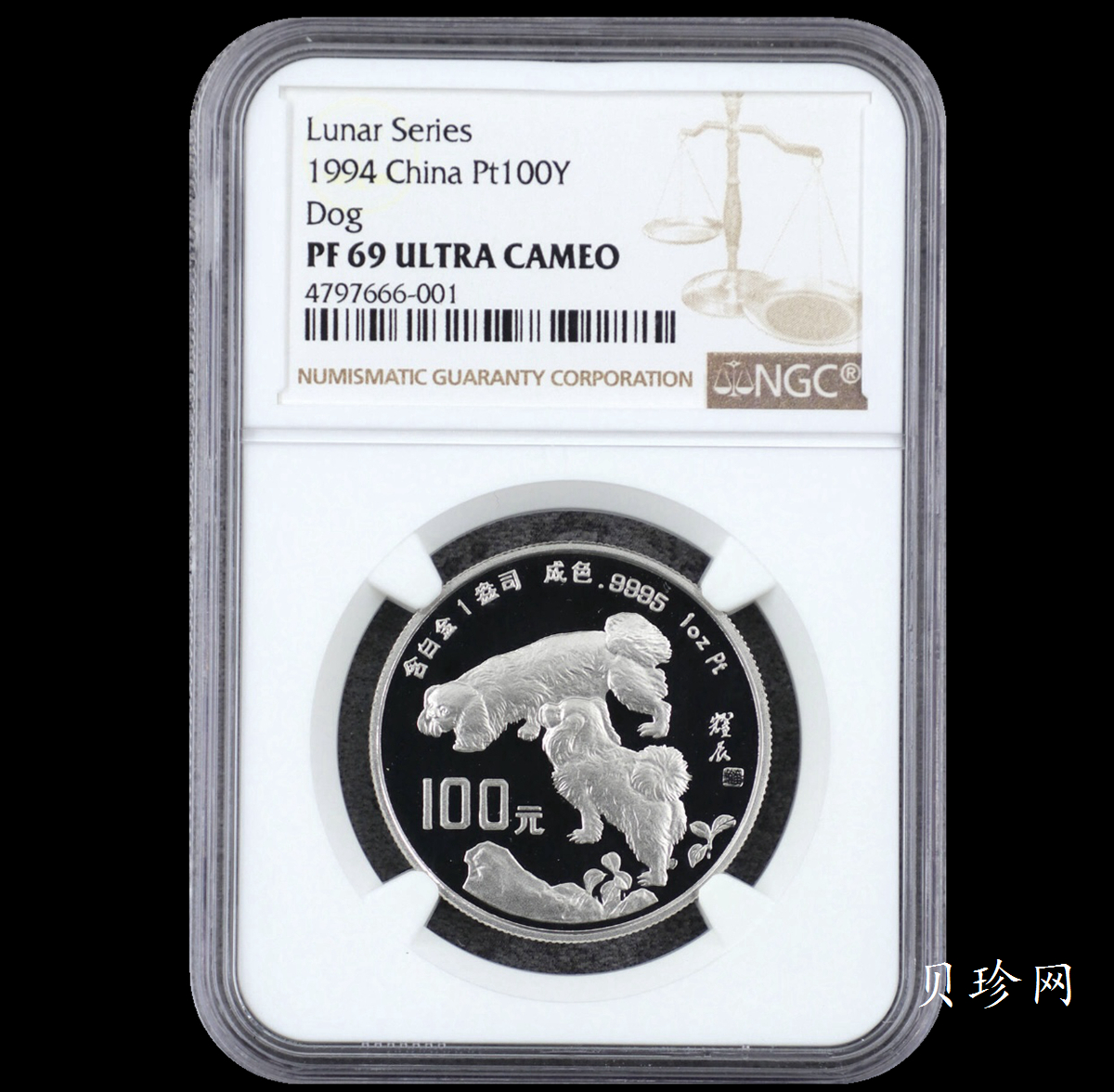• 【940309】1994中国甲戌(狗)年-双狗图1盎司精制铂币
