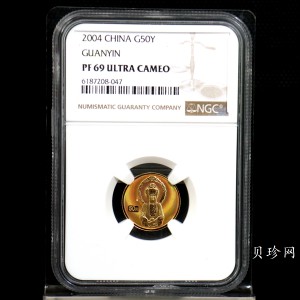 单币:2004年观音金纪念币-白衣观音像1/10盎司幻彩精制金币