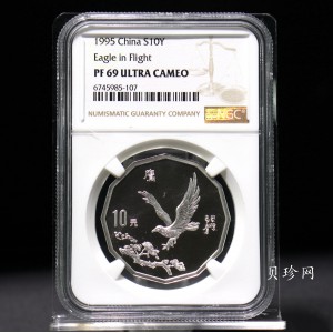 • 【959410】1995年中国近代名画系列金银纪念币(第2组)-鹰图2/3盎司十二边形精制银币