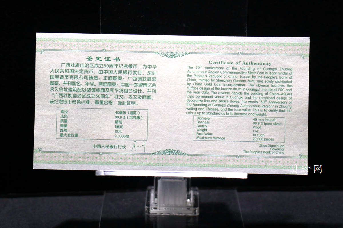 • 【080801】2008年广西壮族自治区成立50周年1盎司精制银币
