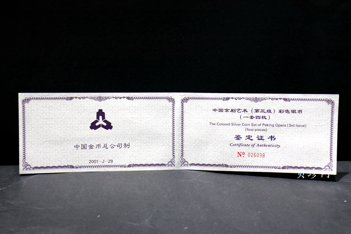 套币:2001年中国京剧艺术第三组彩色银币四枚一套