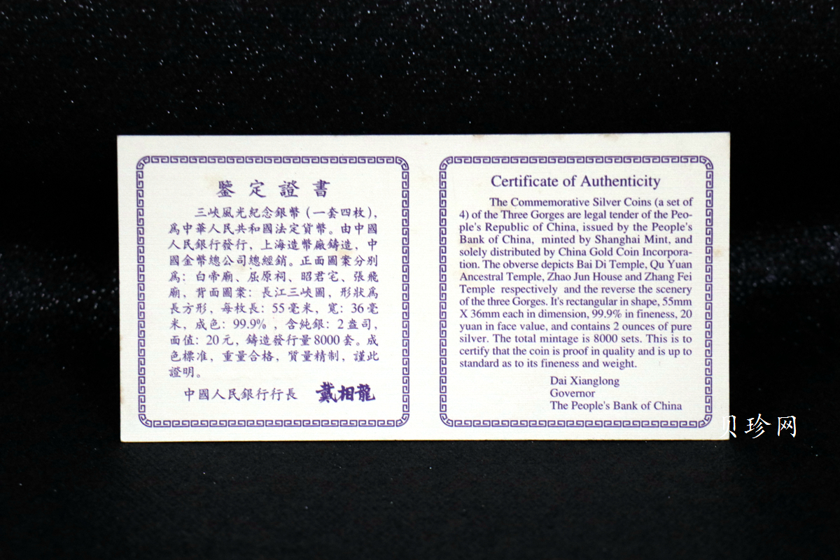 套币:1996年长江三峡长方形精制银币四枚一套