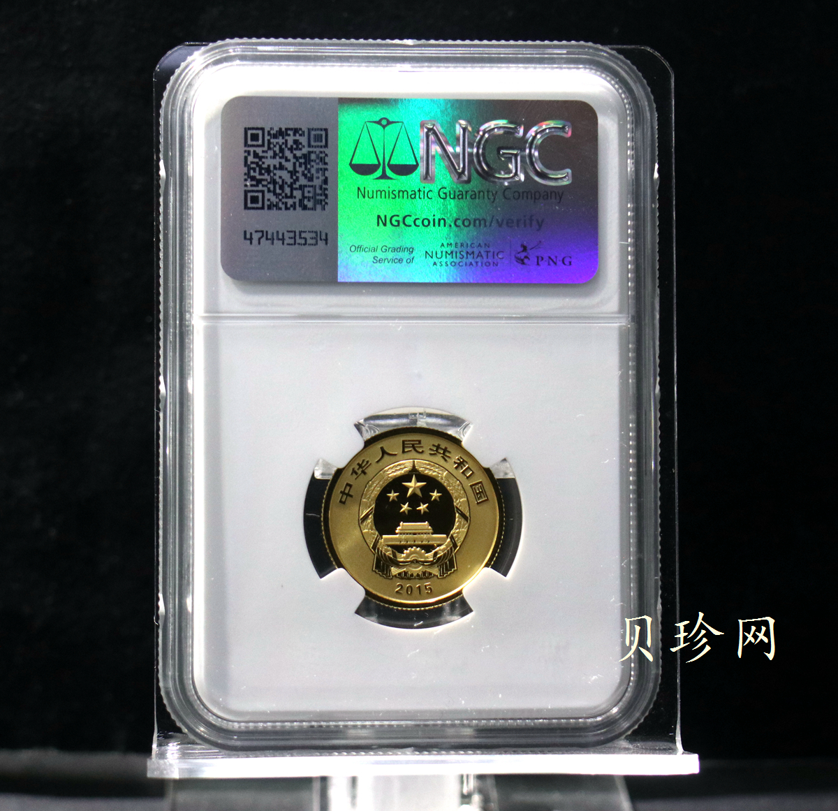 • 【150402】2015年中国近代国画大师徐悲鸿—红叶喜鹊1/4盎司精制金币