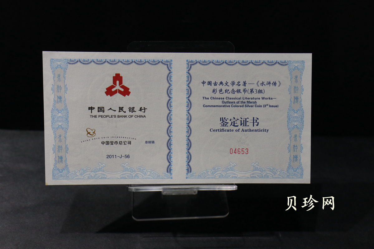 “中国古典文学名著——《水浒传》”彩色金银纪念币自2009~2011年共发行了3组,币面设计基本按原著重要章节依次设计,因此,这个系列纪念币会以“精缩版”的“小”《水浒传》面貌呈现,达到对中国古典文学名著时代特征、文化意义、艺术魅力的传承与再现。中国金币“传承文化淬炼金银”的品牌精神在这些拥有强大文化容量与民族文化魅力的题材里也获得了巨大的声誉。