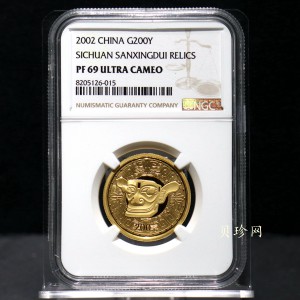 • 【020801】2002年四川三星堆金银纪念币-青铜纵目面具1/2盎司精制金币