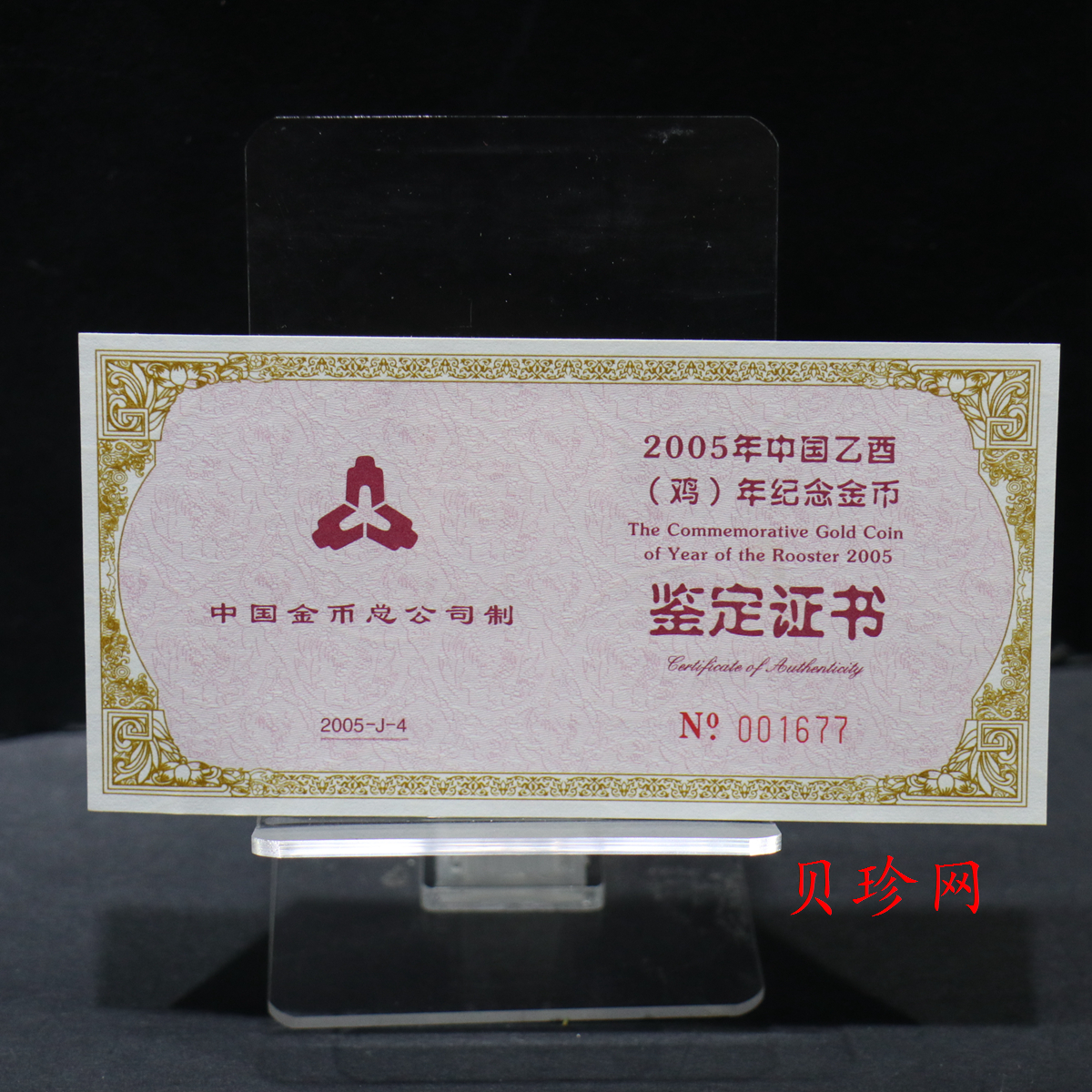 十二生肖,古人有称之为十二禽、十二兽等。生,指人的生年;肖,即类似、相似之意,即人生与某种动物类似。生肖不仅是一种形象生动的纪年、纪月的方法,更与每个人结合起来,赋予了一种神奇的性格。十二生肖就是用十二种动物来表示人的生年的一种传统文化,已流传千年。生肖文化素有历史渊源,它广泛地介入到中华文化的各个领域,影响着人们的生活和思维,已成为中华民俗的一个重要组成部分。于是中国人民银行定于2004年10月23日发行2005中国乙酉(鸡)年金银纪念币一套。该套纪念币共12枚,其中金币6枚,银币6枚,均为中华人民共和国法定货币。