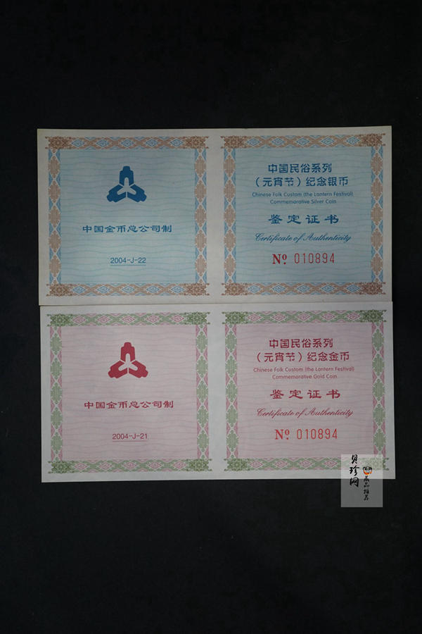 套币:2004年中国民俗-元宵节彩色精制金银币两枚一套