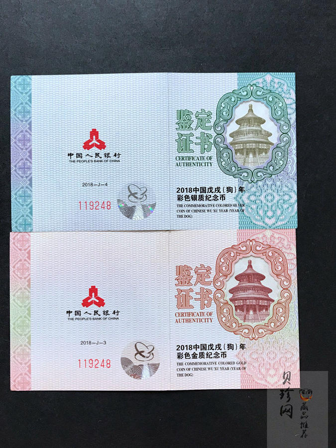 2018中国戊戌(狗)年金银纪念币正面图案均为“中华人民共和国国徽,衬以连年有余吉祥纹饰,并刊国名、年号”,背面图案有“写实狗造型,衬以装饰狗纹样”和“中国民间传统装饰狗造型,衬以吉祥纹饰(局部彩色)”两种。而这套纪念币除了造型独特外,形状上也别具一格,除了传统的圆形风格外,增加了扇形、梅形、长方形,精致工艺彰显精美与独特。