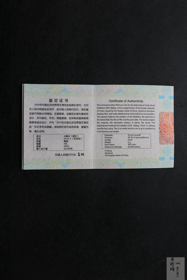 • 【190503】2019年中国北京世界园艺博览会贵金属纪念币3克圆形铂币