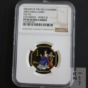 单币:2003年中国古典文学名著——《红楼梦》彩色金纪念币(第3组)-黛玉夺魁1/2盎司八边形彩色精制金币