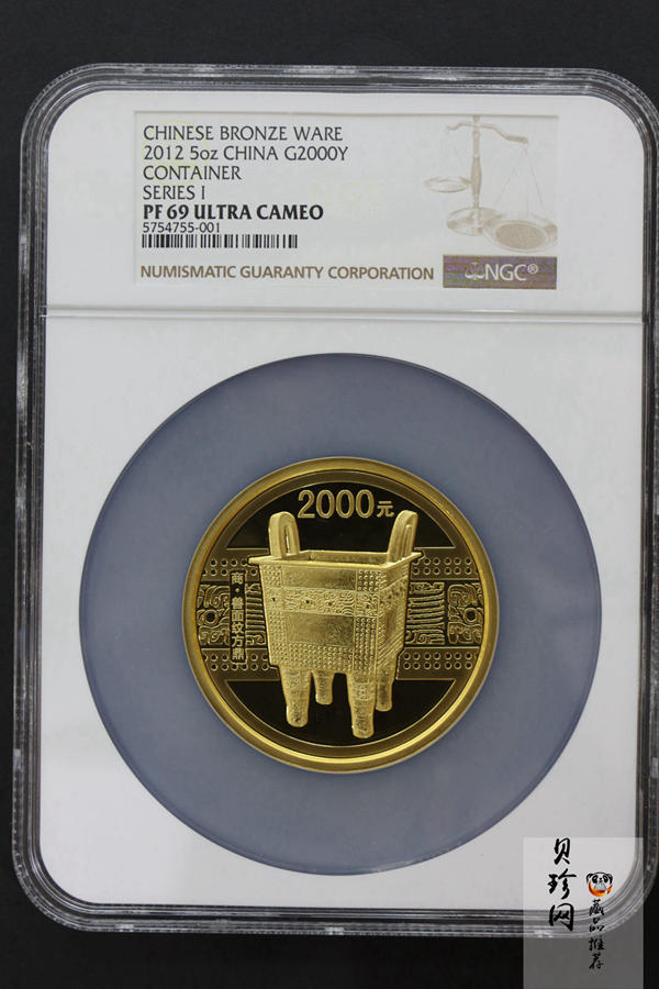 单币:2012年青铜器第(1)组-商·兽面纹方鼎5盎司精制金币