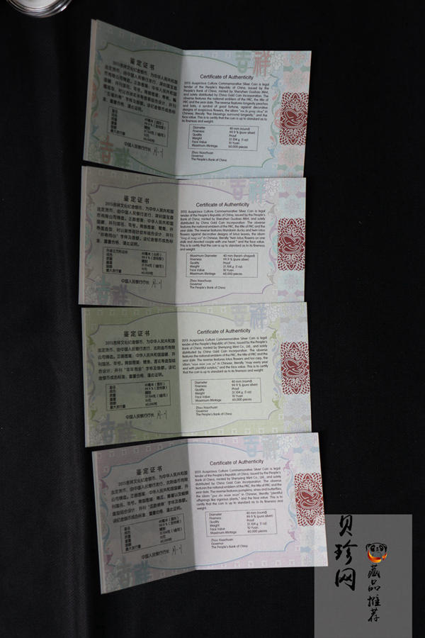 套币:2015年吉祥文化1盎司精制银币4枚一套