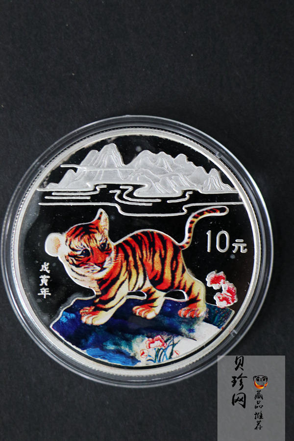 单币:1998中国戊寅(虎)年银纪念币-小老虎1盎司圆形彩色精制银币