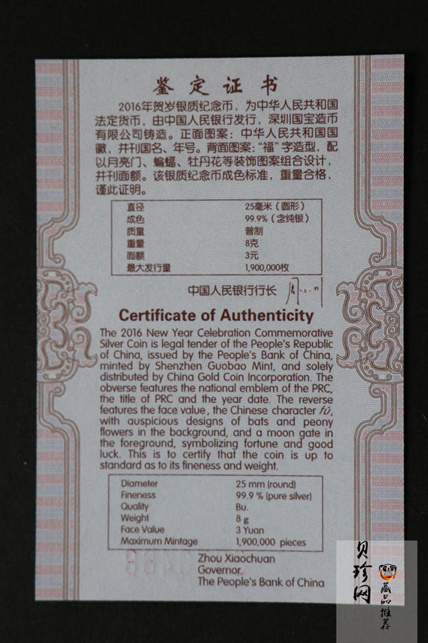 【160201】2016年贺岁银质8g纪念币