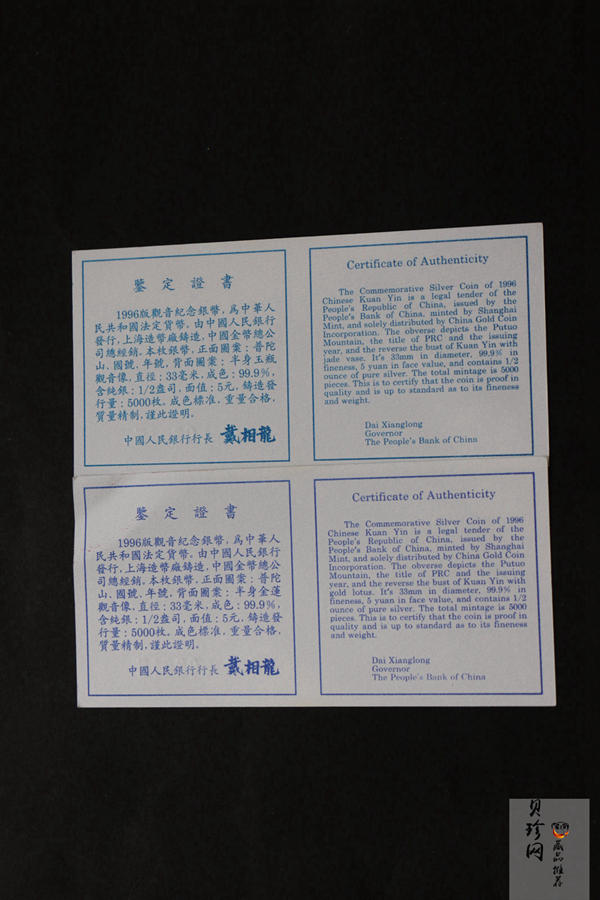 【969210】1996年观音1/2盎司精制银币两枚一套