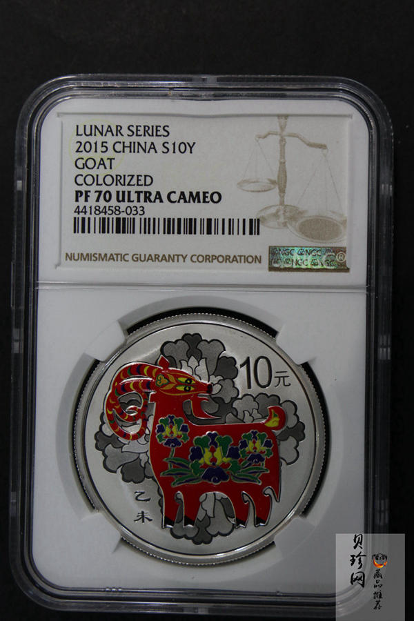 彩色金银币上,一只传统装饰造型的山羊,常见于剪纸、年画、皮影、泥塑等,承载着中国民俗文化的精华,是春节等传统节日欢乐气氛里必不可缺的喜庆元素。山羊是人类最早驯化饲养的动物之一,遍布中华大地,“羊大为美”,在古代中国,羊多、羊肥是生活富裕的象征。