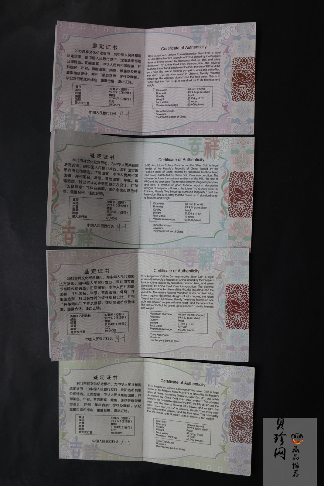 套币:2015年吉祥文化1盎司精制银币4枚一套