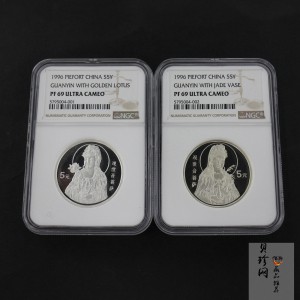• 【969300】1996年观音银纪念币1盎司精制银币2枚一套