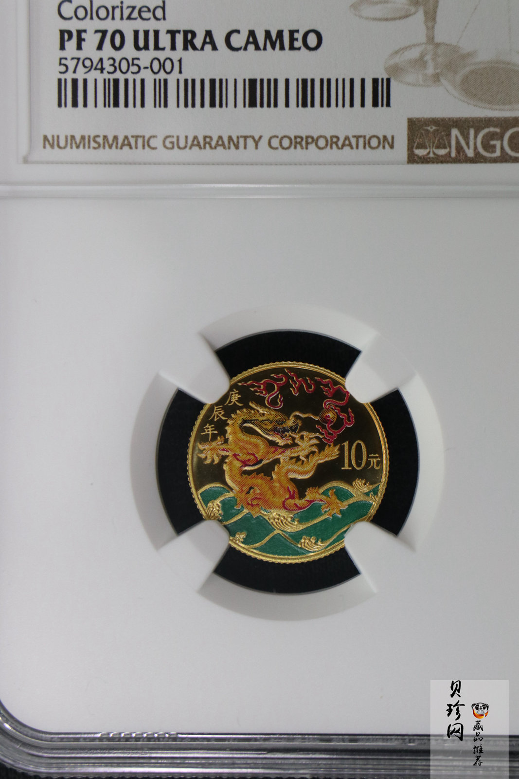 【000305】2000中国庚辰(龙)年金银纪念币-彩龙图1/10盎司彩色精制金币