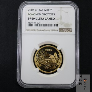 单币:2002年中国石窟艺术(龙门)金银纪念币-飞天图1/2盎司精制金币