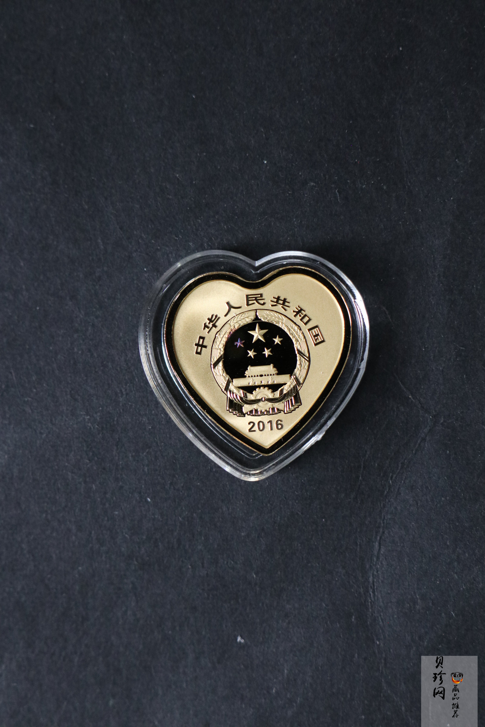 该套“并蒂同心”金银纪念币别出心裁地采用了“心”形的形制,在外观上有很好的审美效果,有心心相印的寓意。纪念币正面依然是以中华人民共和国国徽为主要图案并附有2016的年号。背面是用戏水鸳鸯和并蒂莲花组成的图案,其上端是盛开着的莲花,一瓣瓣舒展地暴露在阳光下,张扬而热烈。莲花格局上左右对称,一根蒂生长出的两朵花,冥冥中形成心有灵犀的感应。莲花自古就有纯洁、坚贞的寓意,这也体现了爱情的美好品质。莲蓬恰到好处,像是特意点缀的一个挂饰,对整个纪念币有很好的美化效果。莲花如同守护天使,在高处庇佑着湖面上那对含情脉脉的鸳鸯,远观而不相扰。湖面微波荡漾,阳光下泛起片片鳞光,像是工匠雕琢细致的一面铜镜。