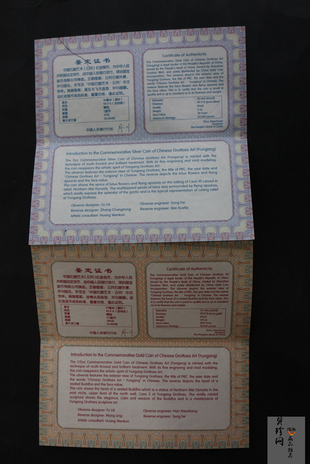 套币:2010年中国石窟艺术云冈金银币2枚一套