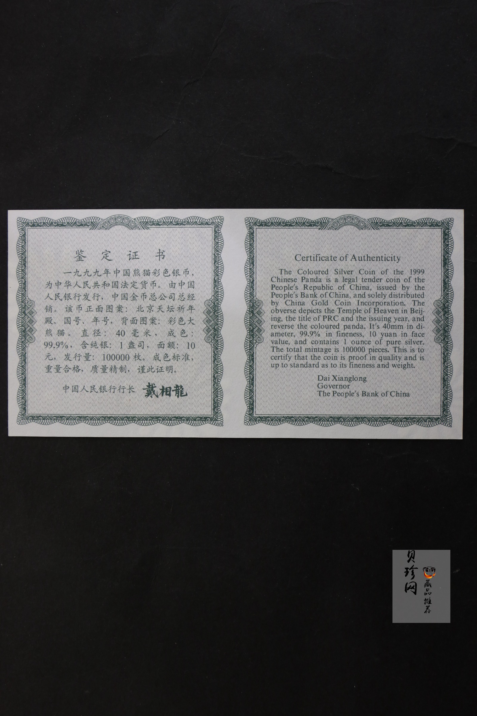 【990112】1999年熊猫1盎司精制彩银币