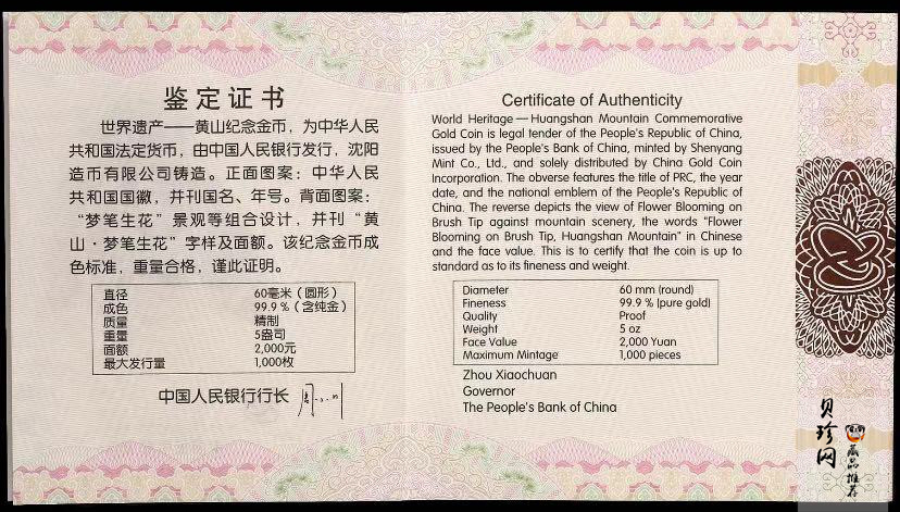 • 【130602】2013年世界遗产-黄山 梦笔生花5盎司精制金币