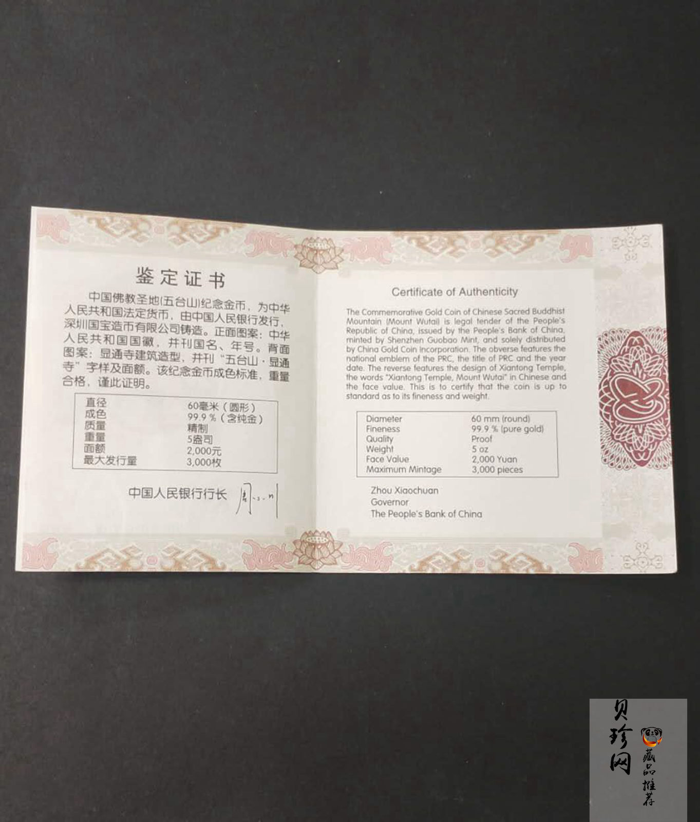 • 【120402】2012年佛教圣地(五台山)显通寺5盎司精制金币