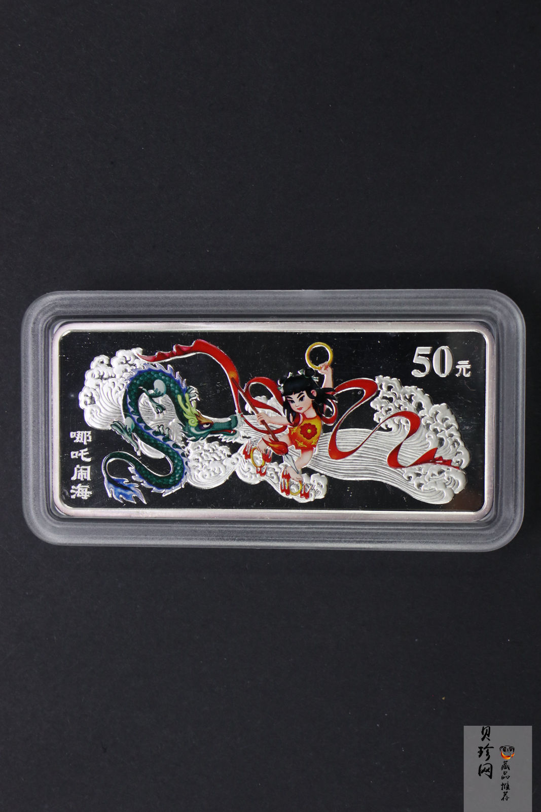 【020402】2002年中国民间神话故事彩色金银纪念币(第2组)5盎司-哪吒闹海长方形彩色精制银币