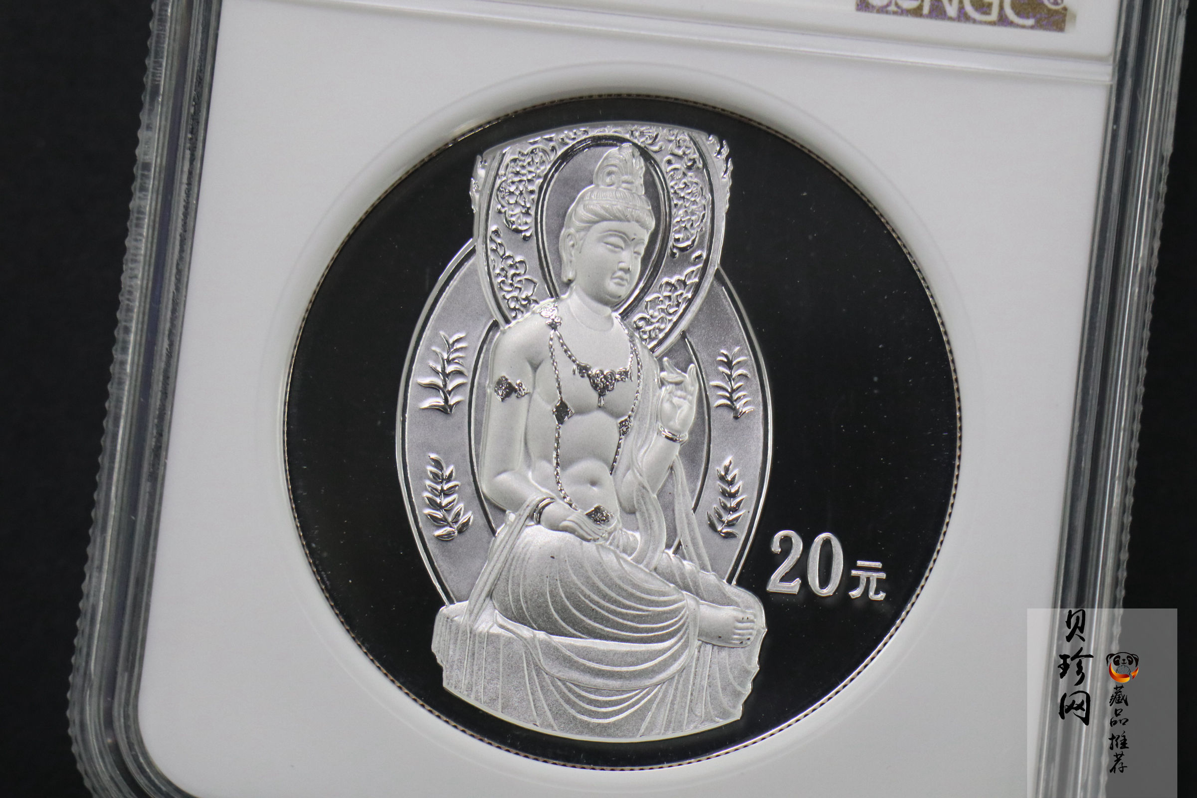 单币:2001中国石窟艺术(敦煌)金银纪念币-盛唐菩萨像2盎司高浮雕精制银币