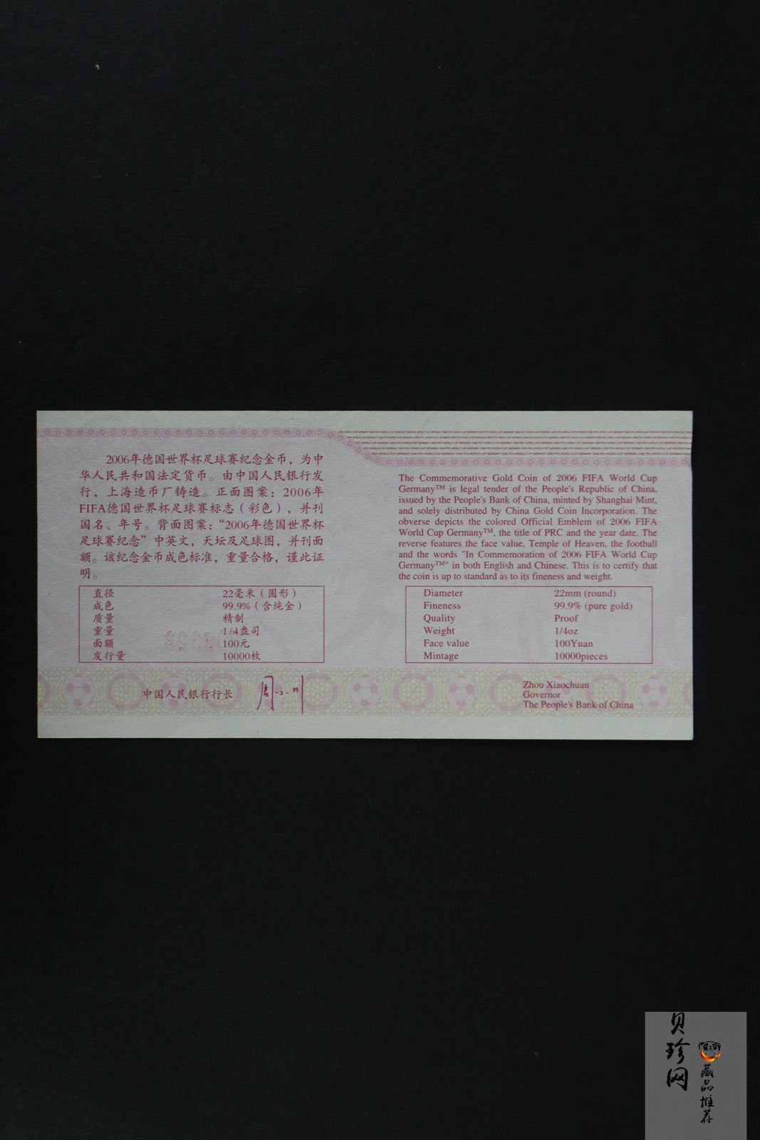 • 【050301】2006年德国世界杯足球赛1/4盎司精制金币