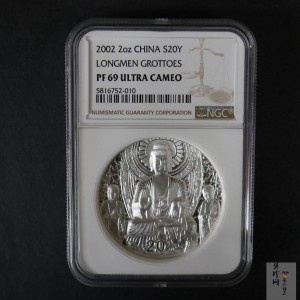 • 【020505】2002年中国石窟艺术(龙门)金银纪念币-佛像图2盎司精制银币