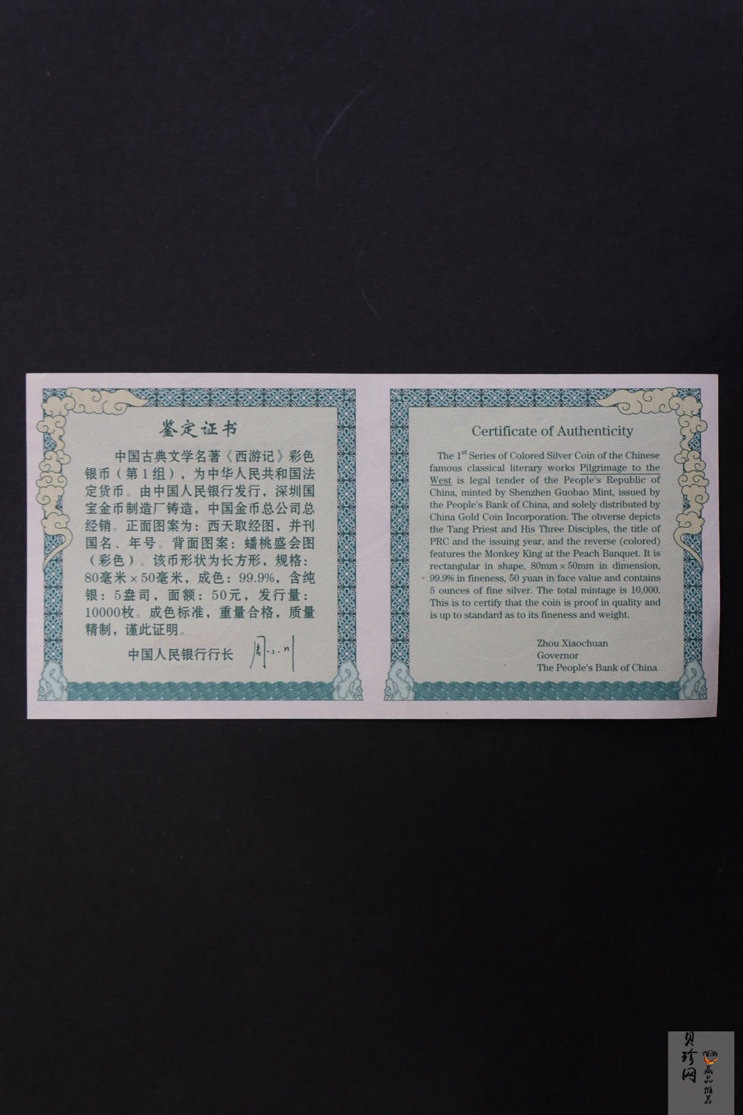 【030803】2003年中国古典文学名著——《西游记》彩色银纪念币(第1组)-蟠桃盛会5盎司长方形