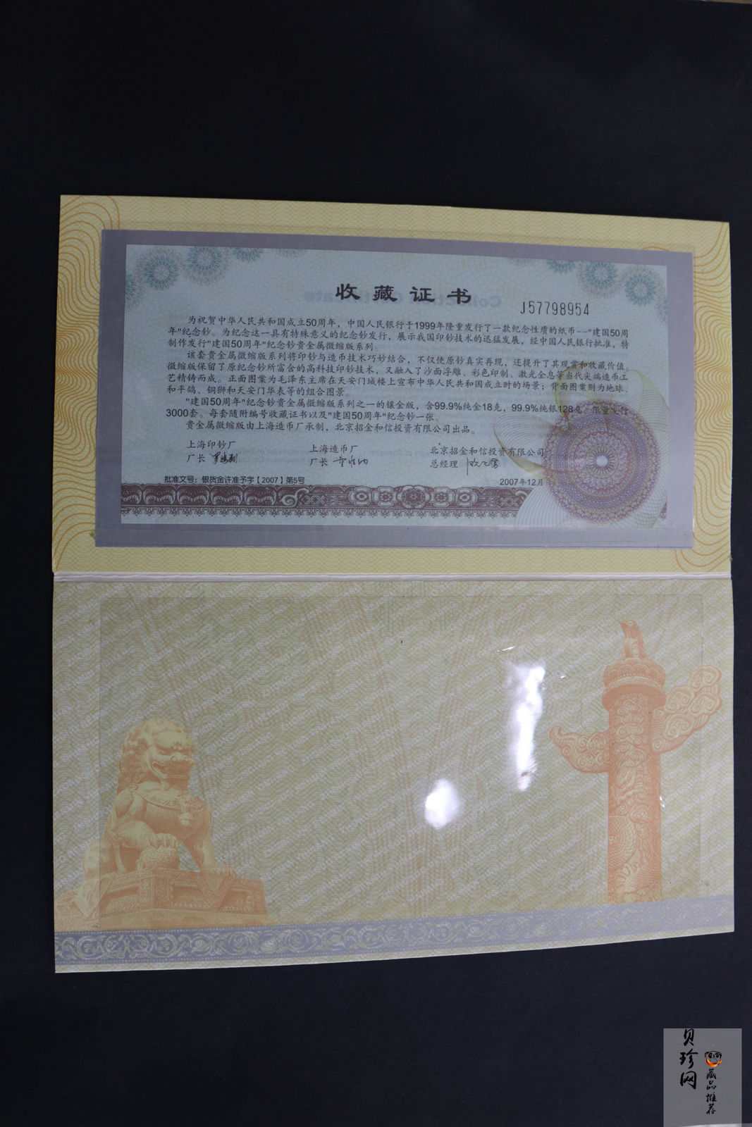 • 【999810】1999年中华人民共和国成立50周年纪念钞贵金属微缩版