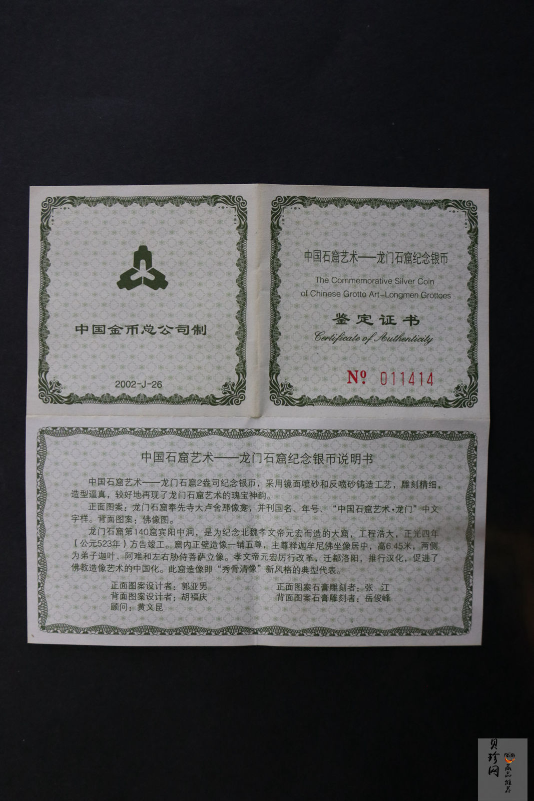 【020505】2002年中国石窟艺术(龙门)金银纪念币-佛像图2盎司精制银币