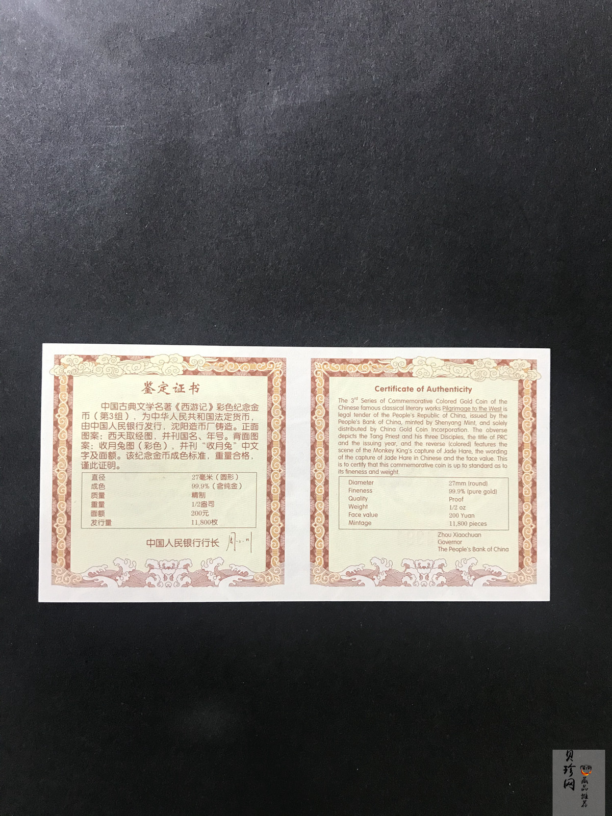 【050702】2005年中国古典文学名著《西游记》第(3)组-收月兔图1/2盎司精制彩金币