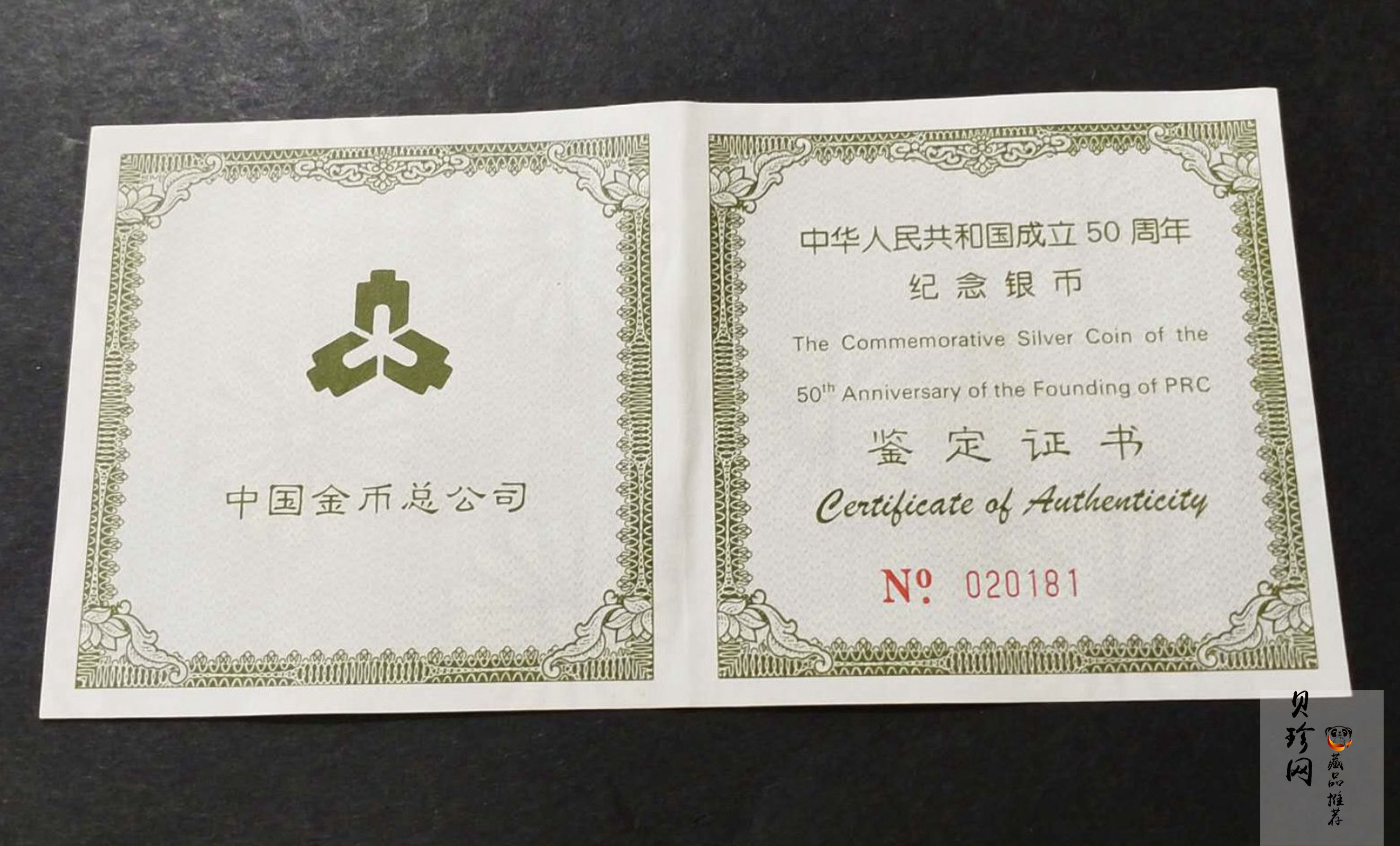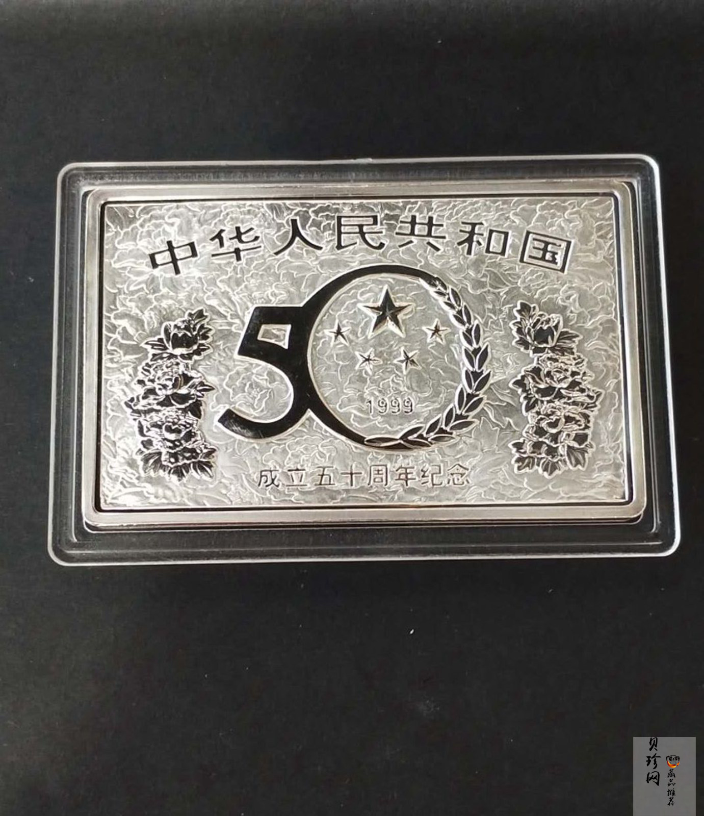 【990603】1999年中华人民共和国成立50周年金银纪念币-开国大典5盎司长方形精制银币