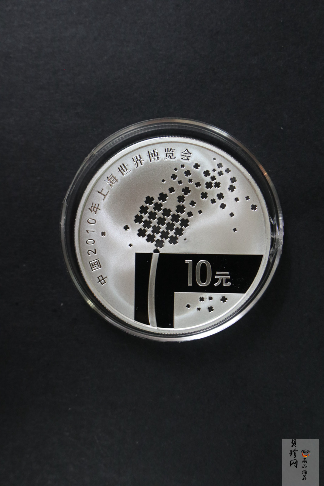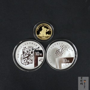 由中国人民银行发行的“中国2010年上海世界博览会”金银纪念币(第1组)正是为纪念这一盛事而发行的。该组纪念币的正面图案均为此次博览会会徽及与地球组合造型。币面以和谐的绿色再现了博览会的会徽标志。2010年上海世界博览会会徽标志以汉字“世”为创意原型,并与数字“2010”巧妙组合,表达了中国人民举办一届属于世界的、多元文化融合的博览盛会的强烈愿望。而会徽图案如果从形象上看,则犹如一个三人合臂相拥、美满幸福、相携同乐的家庭。该设计同时也可抽象为“你、我、他”的广义人类,对美好和谐生活的追求,也表达了世博会“理解、沟通、欢聚、合作”的理念,凸显出中国2010年上海世博会以人为本的积极追求。会徽以绿色为主色调,其富有活力的生命感,增添了向上、升腾、明快的动感和意蕴,抒发了中国人民面向未来,追求可持续发展的创造激情。