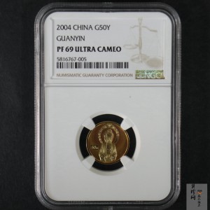 【040901】2004年观音金纪念币-白衣观音像1/10盎司幻彩精制金币