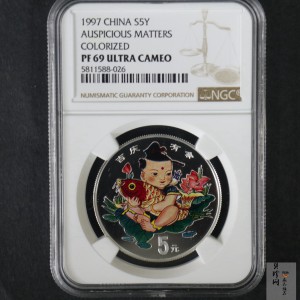 • 【971309】1997年中国传统吉祥图(吉庆有余)金银纪念币1/2盎司彩色精制银币