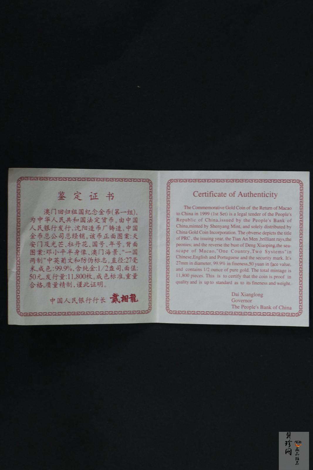 【971002】1997年澳门回归祖国金银纪念币(第1组)-邓小平1/2盎司精制金币