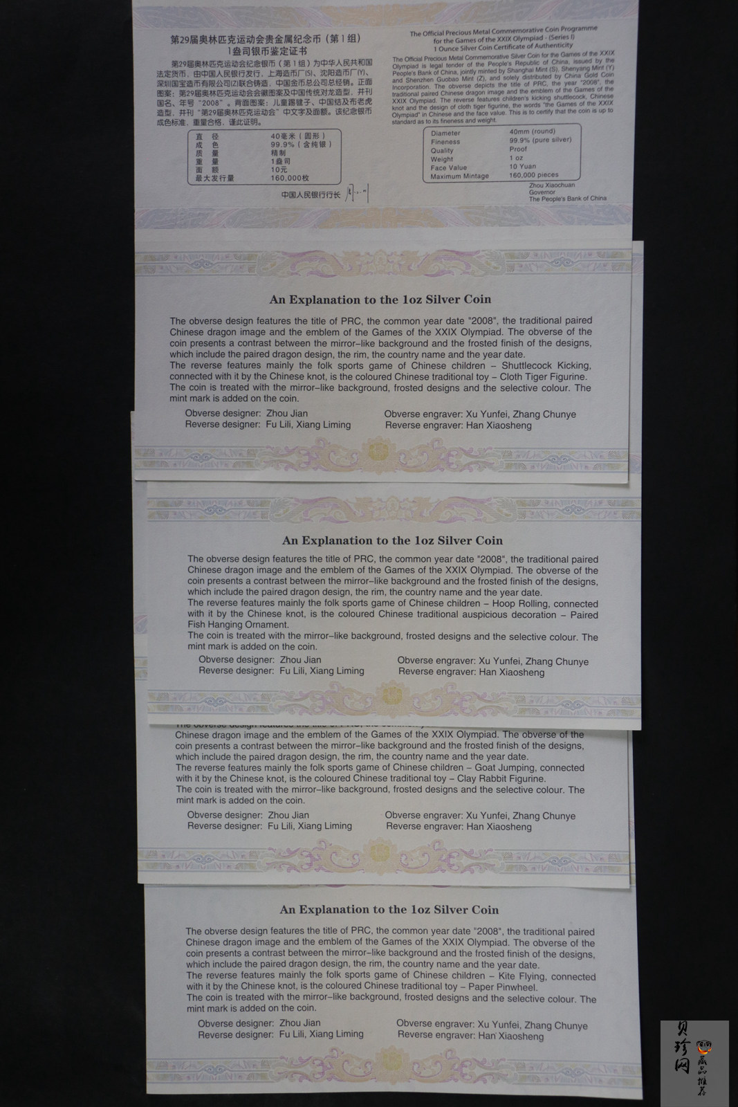 套币:2008年第29届奥林匹克运动会第(1)组1盎司精制彩银币4枚一套