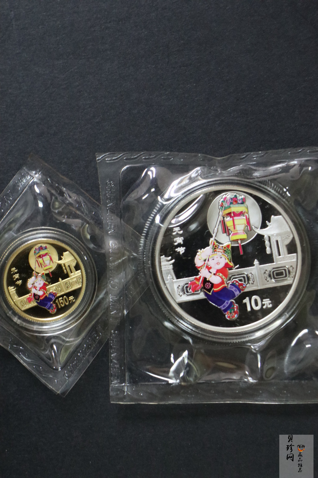 套币:2004年中国民俗-元宵节彩色精制金银币两枚一套