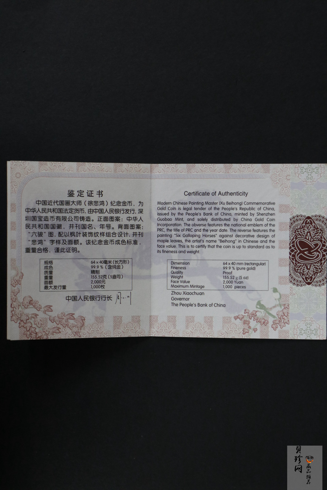 • 【150401】2015年近代国画大师徐悲鸿-六骏图5盎司长方形精制金币